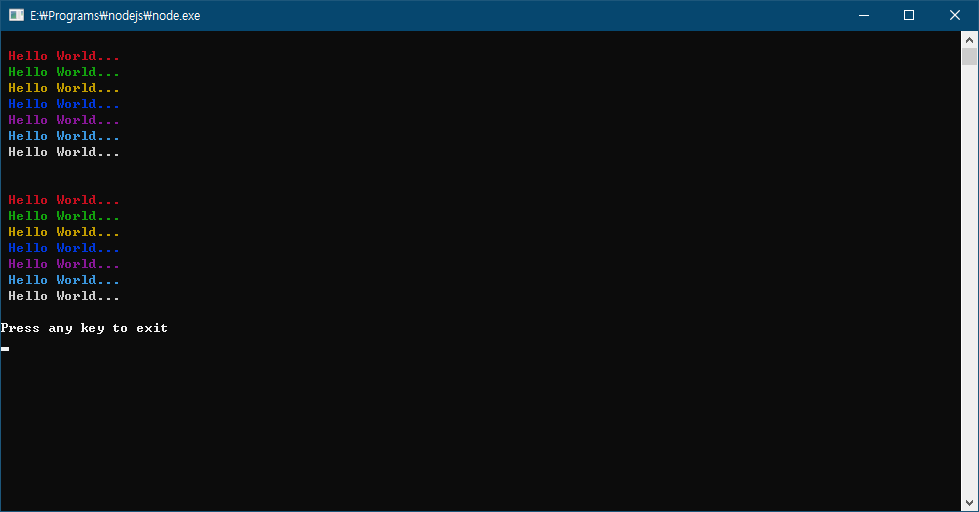 console.log("\u001b[%dm", i, 'Hello World...');